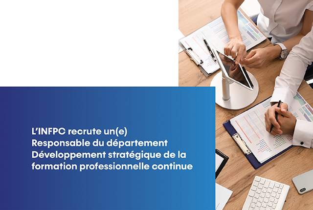 L’INFPC recrute un(e) Responsable pour son nouveau département du Développement stratégique de la formation professionnelle continue.