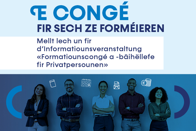 Fir Är Kompetenze weiderzëentwéckelen, kënnt Dir Hëllefsmoossnamen am Beräich vun der Formatioun an Usproch huelen.