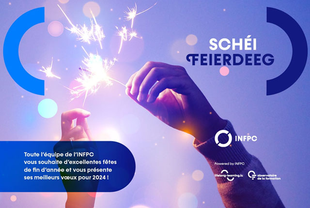 D'ganz Ekipp vum INFPC wënscht Iech schéi Feierdeeg an e gudde Rutsch an d’Joer 2024