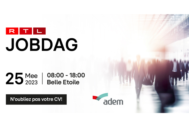 Den RTL Jobdag, en Donneschdeg 25. Mee op RTL. Zesumme mat der ADEM. Rendez-vous um Stand vum INFPC fir Iech iwwert d'Weiderbildungsofferen an déi entspriéchend Demarchë z'informéieren!